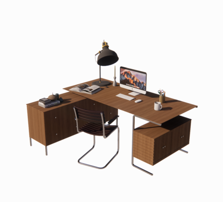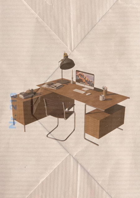 По моему мнению, рабочее место дизайнера должно быть просторным, выполненным из тактильно приятных материалов, а также иметь достаточно места для хранения творческих материалов. В своём рабочем месте я воплотила эти принципы. Форму стола я хотела сделать лёгкой, в стиле Баухаус.