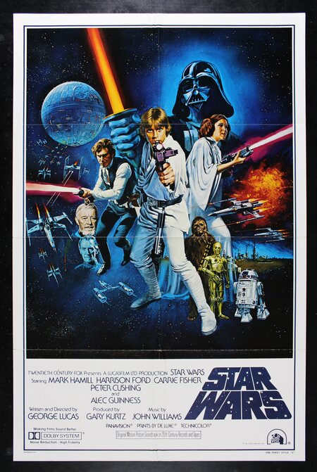 Слева: постер к к/ф «Alien». реж. Ридли Скотт (1979) Справа: постер к к/ф «Star Wars». реж. Джордж Лукас (1977)