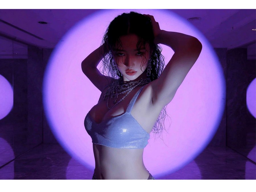 /imagine prompt: Make a slow motion of a girl dancing up close in this studio with disheveled hair and beads of sweat on her face. She looks at herself in the mirror, occasionally turning to face the camera. She slowly touches her hair with her hands and plays with emotions as if a very sad song is playing. We film her from the side, almost from behind, in the most realistic and detailed way possible or Make these photos more detailed, sharper, and more cinematic so that the beads of sweat are visible.