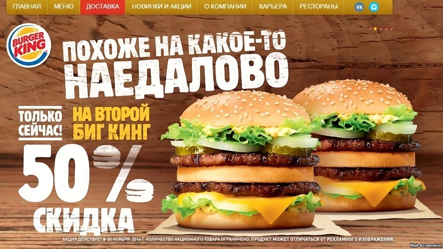 Скандальная реклама Burger King разрешена: очередное доказательство двойных стандартов ФАС // nationalinterest URL: http://nationalinterest.ru/news/skandalnaya-reklama-burger-king-razreshena-ocherednoe-dokazatelstvo-dvojnyh-standartov-fas/ (дата обращения: 02.11.2025).
