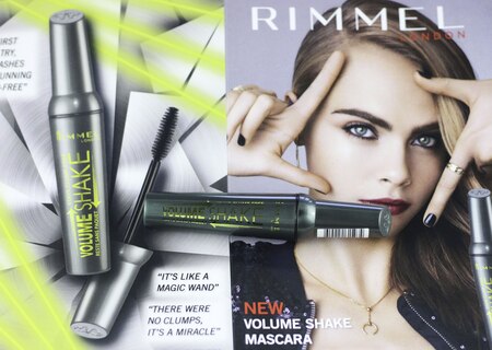 Rimmel London, «Volume Shake Mascara», 2017 Реклама туши, в которой визуальный язык сочетает технологичность и глянцевую сексуальность. Холодные металлические оттенки, зелёные неоновые линии и слоганы о «чудесном эффекте» создают ощущение научной точности и инновации. Образ модели — идеально собранный, взгляд прямой и уверенный, макияж безупречен до искусственности. Несмотря на стилизацию под «современный реализм», кампания сохраняет эстетику глянцевого идеала: каждая деталь подчёркнута, кожа без текстуры, красота рационализирована и отфильтрована.