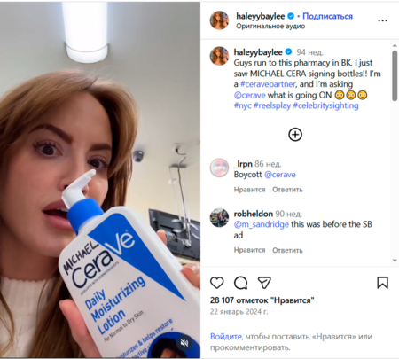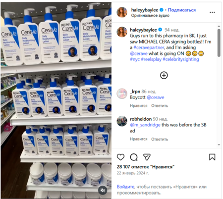 Пост из инстаграм*: @cerave, 2024 г *Признана экстремистской организацией и запрещена на территории РФ