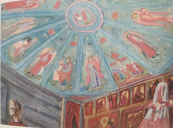 В «Северной часовне» Виктора Попкова (1972 г.) архитектура православной традиции служит не религиозному прославлению, а сохранению народной памяти. Часовня становится символом духовных корней, не акцентируя внимание на религиозных обрядах, а на ценности культурного и исторического наследия. Попков использует мотив православной архитектуры как средство сохранения народной идентичности, передавая через этот образ идею преемственности и связи с прошлым, несмотря на доминирование атеистической идеологии.