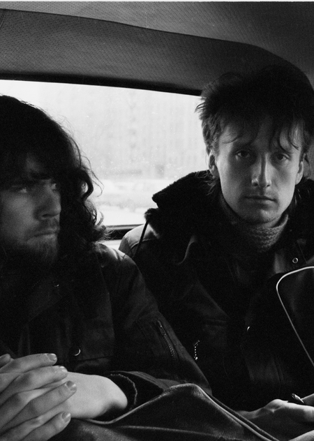 Сергей Курехин и Борис Гребенщиков. Клуб 81, Ленинград, 1983 год. Фото: Ханс Кумпф // Александр Кондрашкин, ударные, деталь с консервными банками. Клуб 81, Ленинград, 1983 г. Фото: Ханс Кумпф