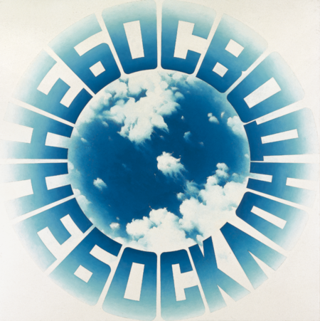 Работа художника «Слава КПСС» — большие красные буквы, которым тесно в пространстве, куда они помещены. Одна из главных советских аксиом на фоне голубого неба, располагающиеся на нем облака и их движение намекает на возможность пройти сквозь эту идеологическую преграду.