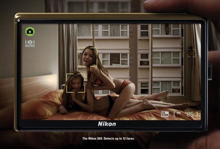 наглядный пример разницы позиционирования женщины и мужчины в одной и той же кампании Nikon.