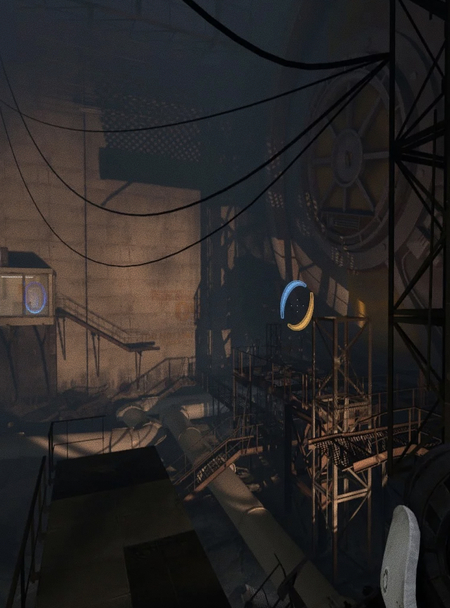 Внутренняя архитектура Aperture Science, которую игрок наблюдает с первых секунд в Portal 2, заимствует образы из эпохи раннего индустриального футуризма, когда технологии будущего были синонимом физической силы в разы превосходящей человеческие возможности. Мегаструктуры, автоматизирующие ручной труд мощные механизмы, бесконечно производящий фабричный конвеер — образы, которые первыми приходят на ум при исследовании внутренностей научного комплекса.