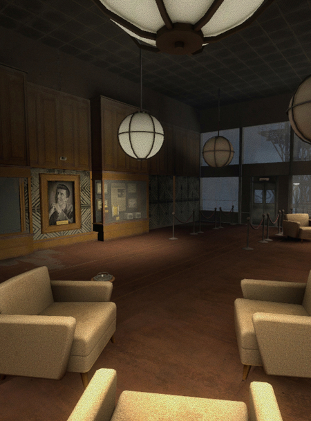 В остатках медиа-материалов лаборатории смешиваются воедино тон оптимистичной консьюмеристской рекламы 50-х годов и тоталитарной пропаганды, что игра сатирически обыгрывает в контексте своего научно-фантастического сеттинга
