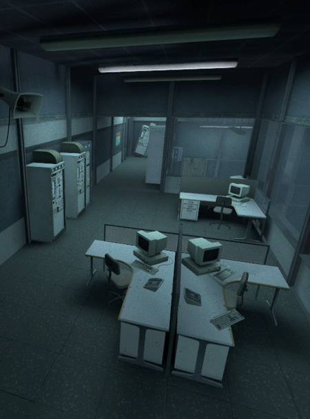 Офисные кьюбиклы и тестовые камеры лаборатории сосуществуют параллельно и рифмуются друг с другом. На первый взгляд кажется, что их отношения — надзиратель и подопытный. На деле же концептуально окружение напоминает паноптикум Фуко, где надзираемыми являются как работники лаборатории, так и тестовые субъекты. Позицию контроля же здесь занимает Кейв Джонсон, генеральный директор и основатель Aperture Science, а также сама автоматизированная технологичная система, которую он выстроил внутри научного комплекса.