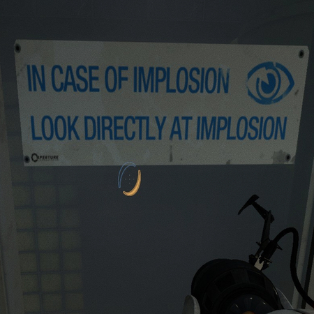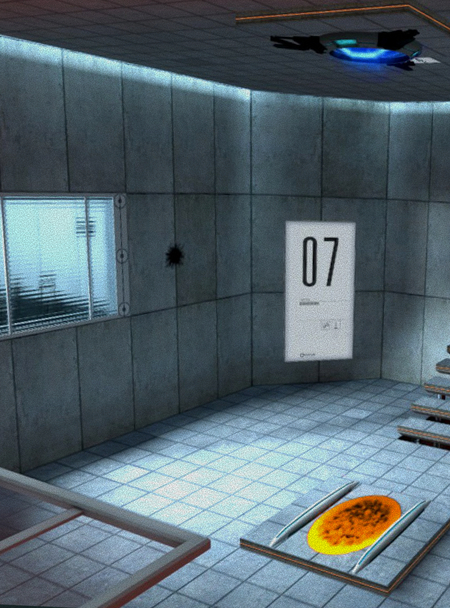 При этом позиция человека в такой среде также сводится к набору функций: человеком можно управлять, как роботом или механизмом, выстраивая для него «идеальные» условия. Дизайн окружения работает так, что в нем невозможно потеряться, у комнат есть своя система навигации, Aperture Science все время опосредованно общается с подопытным человеком через символы и условные обозначения.