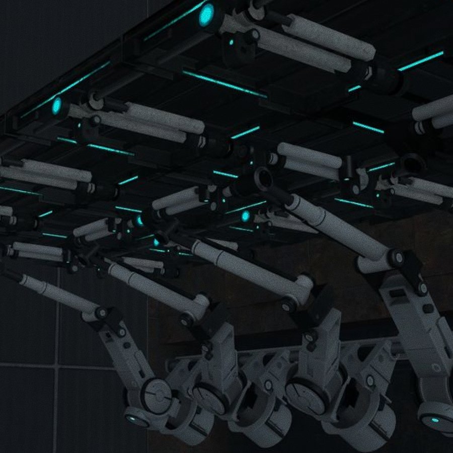 Дизайн интерьеров лаборатории иллюстрирует мечту о будущем как о стерильном, минималистичном и функциональном пространстве. Белые панели, стерильное освещение, навигационные символы и интерфейсы — манифест эффективности и контролируемого комфорта.