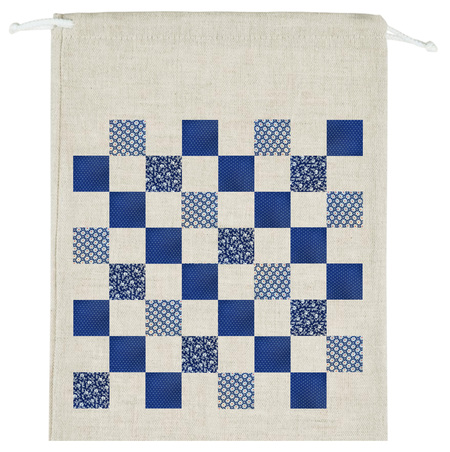 Шахматы будут храниться в удобном мешочке, на котором напечатано шахматное поле.