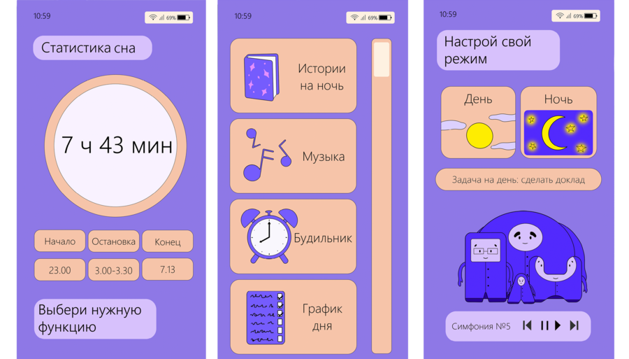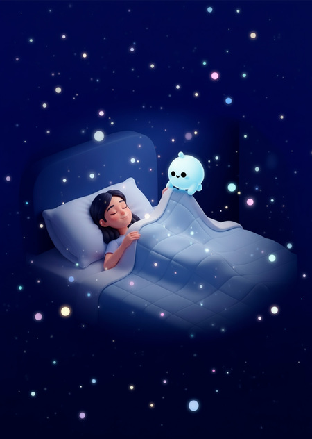 Обложка для проекта была создана в нейросети Nano Banana. Промпт — a 3D cartoon-style illustration depicting a woman peacefully sleeping at night in a cozy blue bed, covered with a blanket. A character flies around her, as in the attached image, and it should be much smaller than the girl. There are soft floating lights and stars in the background. There is no text. https://unitool.ai/ru/nanobanana