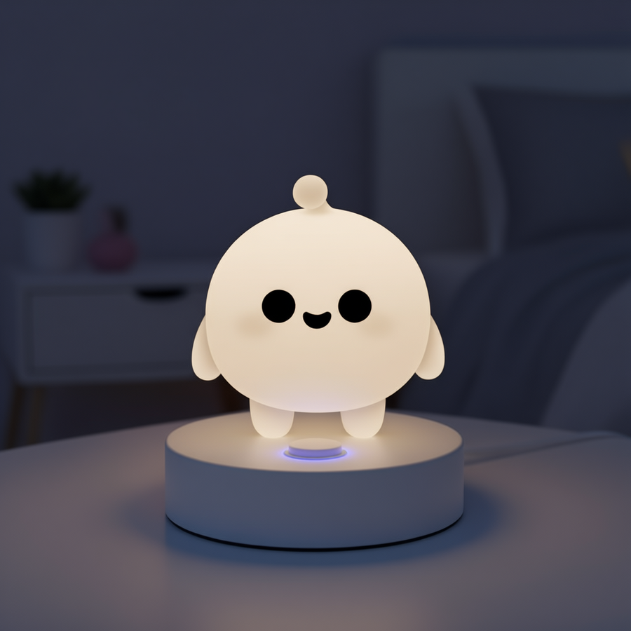 Для генерации ночника использовалась нейросеть Nano Banana, используя картинку маскота как референс. Промпт — сделай ночник по форме такой же, как персонаж на картинке. Под персонажем должна быть пластина с кнопкой включения. Сам ночник должен быть небольшим. https://unitool.ai/ru/nanobanana