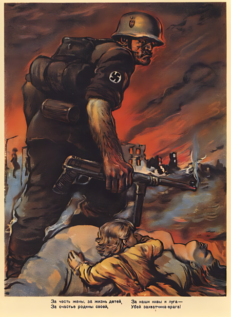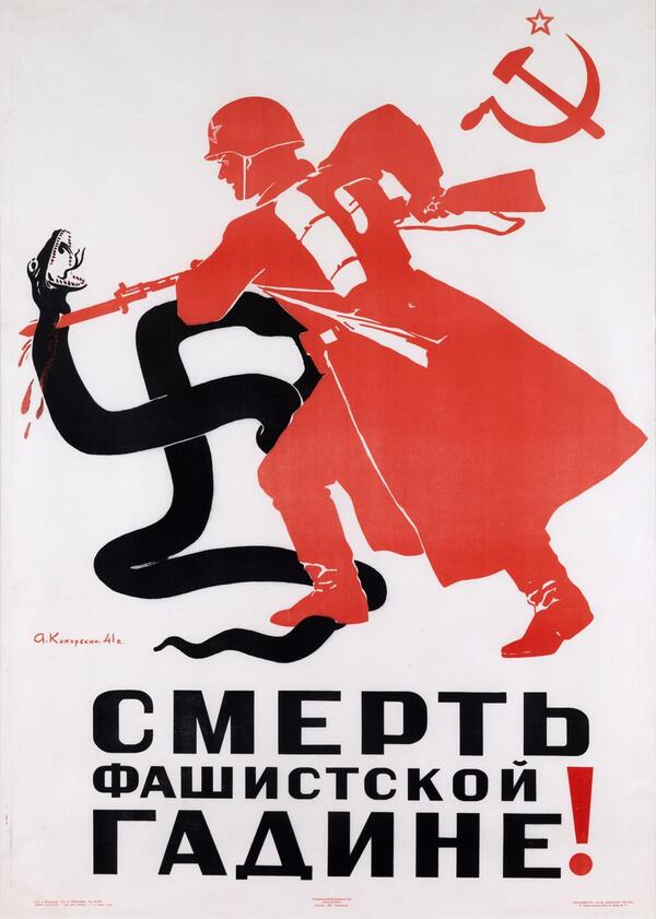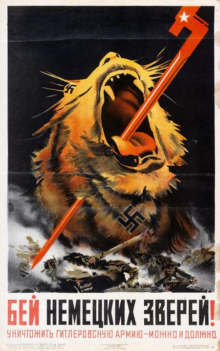 «Бей немецких зверей!» (В.Климашин, Н.Жуков, 1943 г.) «Смерть фашистской гадине!» (А.Кокорекин, 1941 г.)