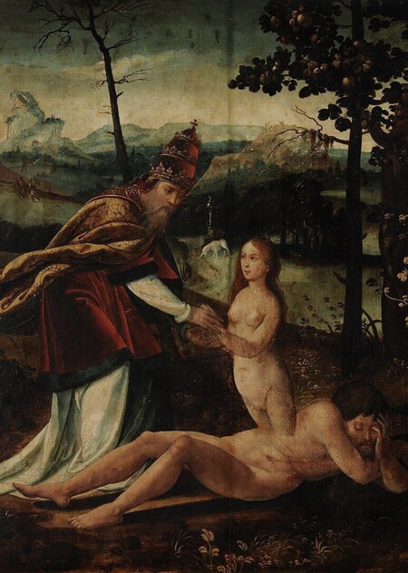 Интересно, что в данном контексте треугольный нимб Бога может быть символом Святой Троицы. Листьями фигового дерева Адам и Ева прикрыли свою наготу после грехопадения.