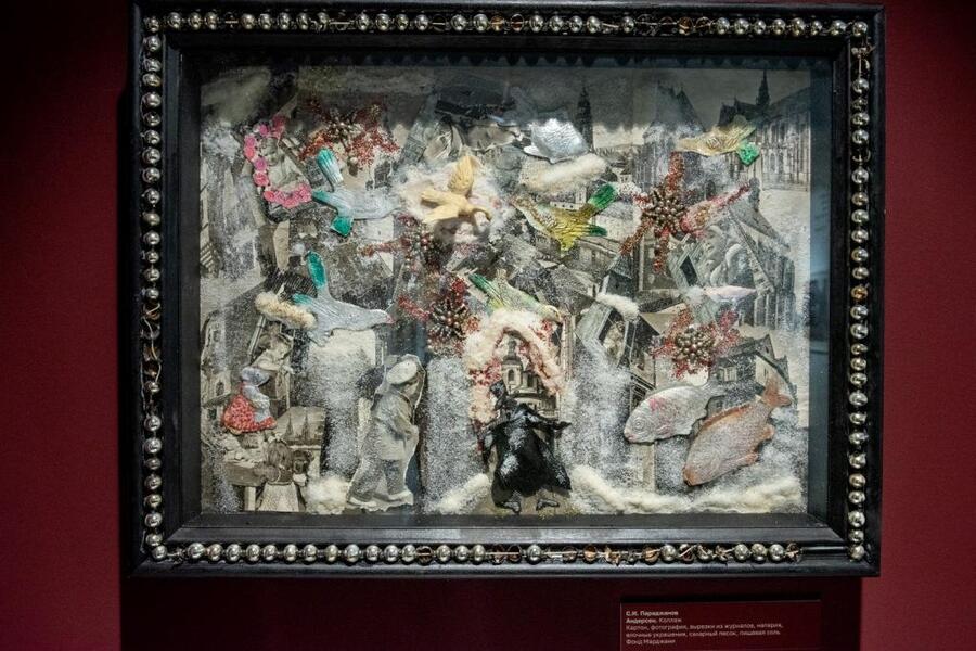 Выставка, посвящённая 100-летию Сергея Параджанова, демонстрирует многогранное творчество, в котором он соединял разные жанры и искусство. Он оказал влияние на советско-поэтическое кино, а его творчество неразрывно связано с визуальными искусствами: картинами, коллажами, инсталляциями. На выставке представлены редкие архивные материалы, фильмы, произведения искусства, а также экспонаты, связанные с его жизнью. Колорит восточных кинолент передаётся засчёт насыщенного бордового цвета стен. Благодаря декору можно отметить раскрытие экспонатов, он помогает.