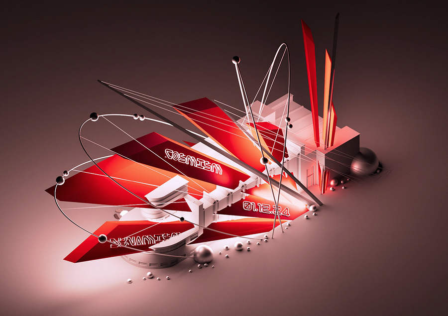 Объекты: Скульптуры из металла и композитов, передающие кинетическую энергию. Предметы, вдохновленные топливными баками, сегментами космических станций.