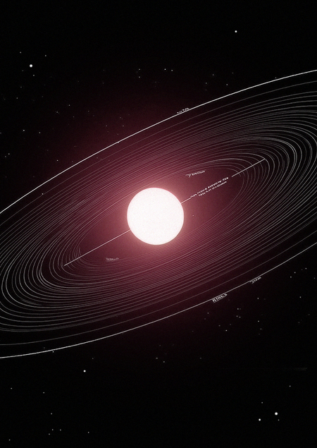 Generate a cover for the AURA design brand. Depict a red circle symbolizing Mars. The cover should be modern, looking toward the future and space, and the image should make you think about the boundlessness of space and the loneliness of man. But most importantly, the cover should reflect the brand’s values: modernity, simplicity, conciseness, and dynamic cosmism.