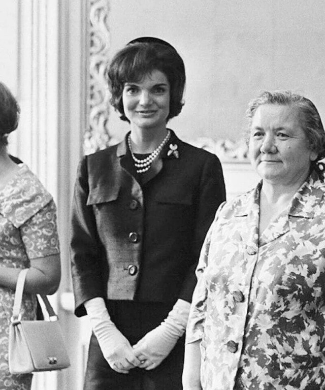 Ее стиль был элегантно сдержан. Она умело сочетала свой официальный статус с женственной элегантностью. Она не была идеологически публичной персоной, но принимала участие в дипломатических приемах и мероприятиях. И могла создать запоминающийся внешний образ. Ее стиль — классический, мягкий, светский, она носила и костюмы, и платья, в том числе и вечерние, юбки ниже колена, предпочитала пастельные оттенки и флористические принты. Выглядела скромно но с достоинством, носила качественную одежду, не была чужда веянияем европейской моды (чего стоят только приемы у Кеннеди).