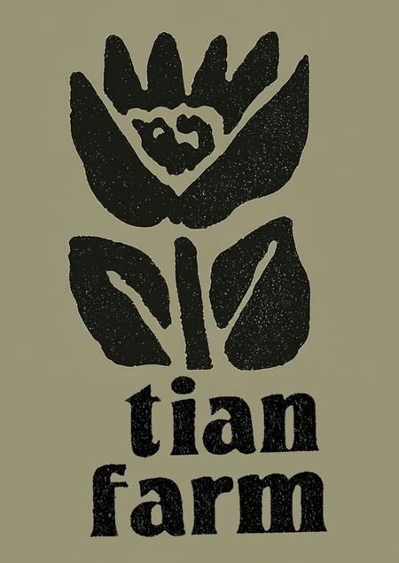 Промт: A warm and inviting logo for a «Home Farm». The design centers on a stylized, simple flower symbol (like a tulip, daisy, or a generic bloom) that represents growth and natural care. Combine this flower with a subtle agricultural element, such as a single leaf, a sprout, or a classic barn silhouette, to clearly communicate the farm theme. Use a clean, modern sans-serif font for the text. The color palette should be earthy and soft (e.g., sage green, terracotta, warm yellow, cream). The overall style is minimalist, friendly, and perfect for a family-run or urban homestead. Place the business name «Tian Farm» in a clean, modern font below the logo symbol. Ensure the text and symbol are balanced and feel like a cohesive unit.