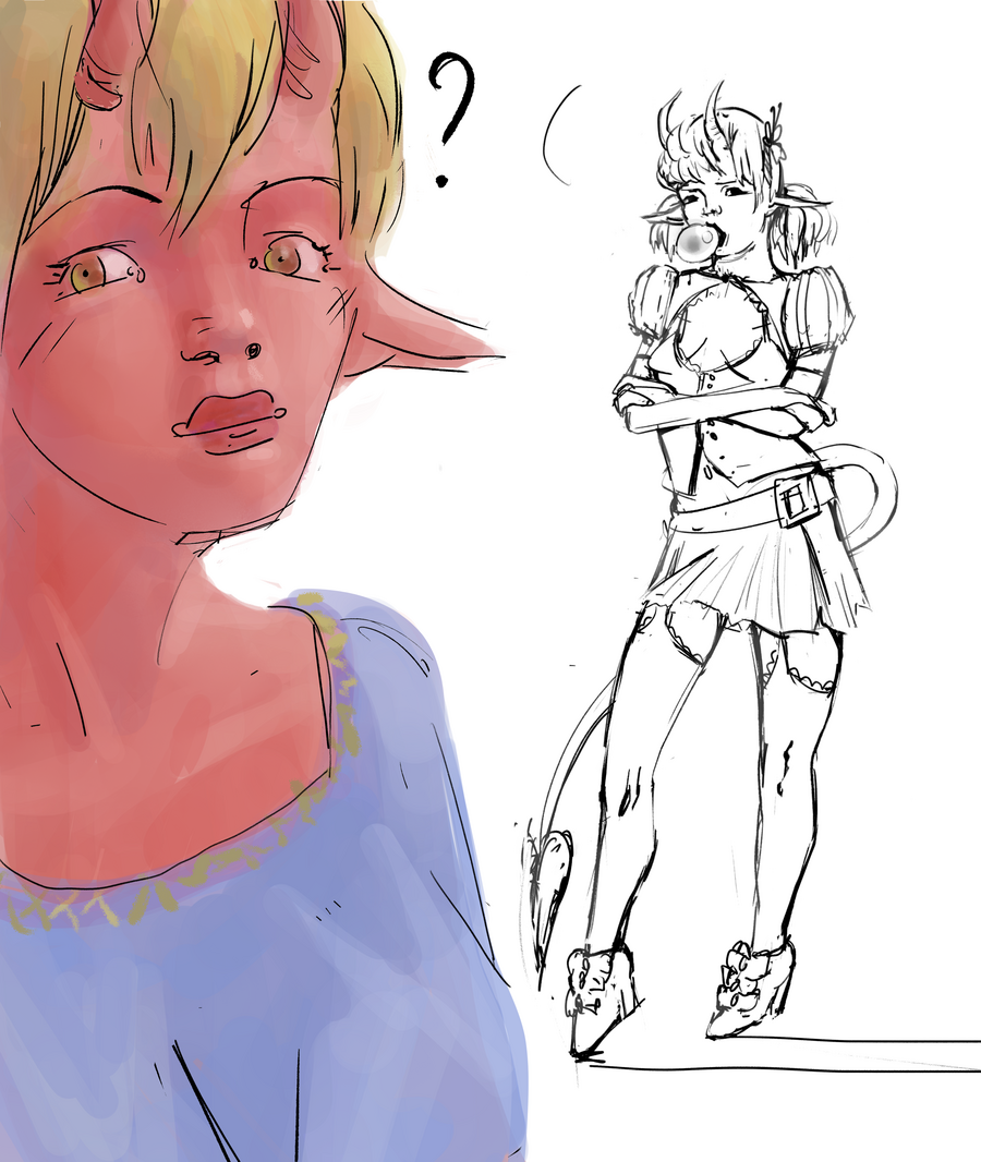 В частном порядке у меня заказали разработку дизайна персонажа для «Dungeons and dragons"(или D & D). D & D — это стратегическая настольная игра в жанре фэнтези на большое количество игроков. В самом начале каждый участник, кроме ведущего, должен создать героя, роль которого ему предстоит отыгрывает в заранее подготовленном приключении. Это касается и социальных взаимодействий, и боя. Как раз дизайн такого персонажа, Тонечки, я и разработала.