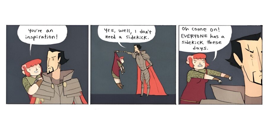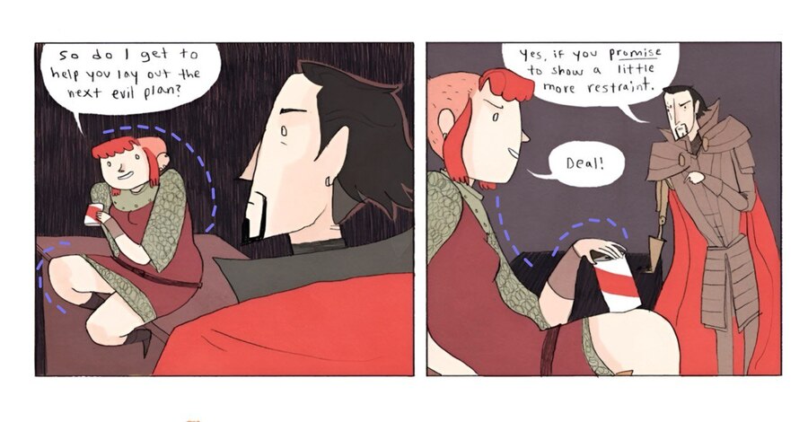Ноэль Стивенсон / Фрагменты из комикса «Nimona» (стр. 17) / год выпуска романа: 2015 г. / Демонстрация взаимоотношений персонажей