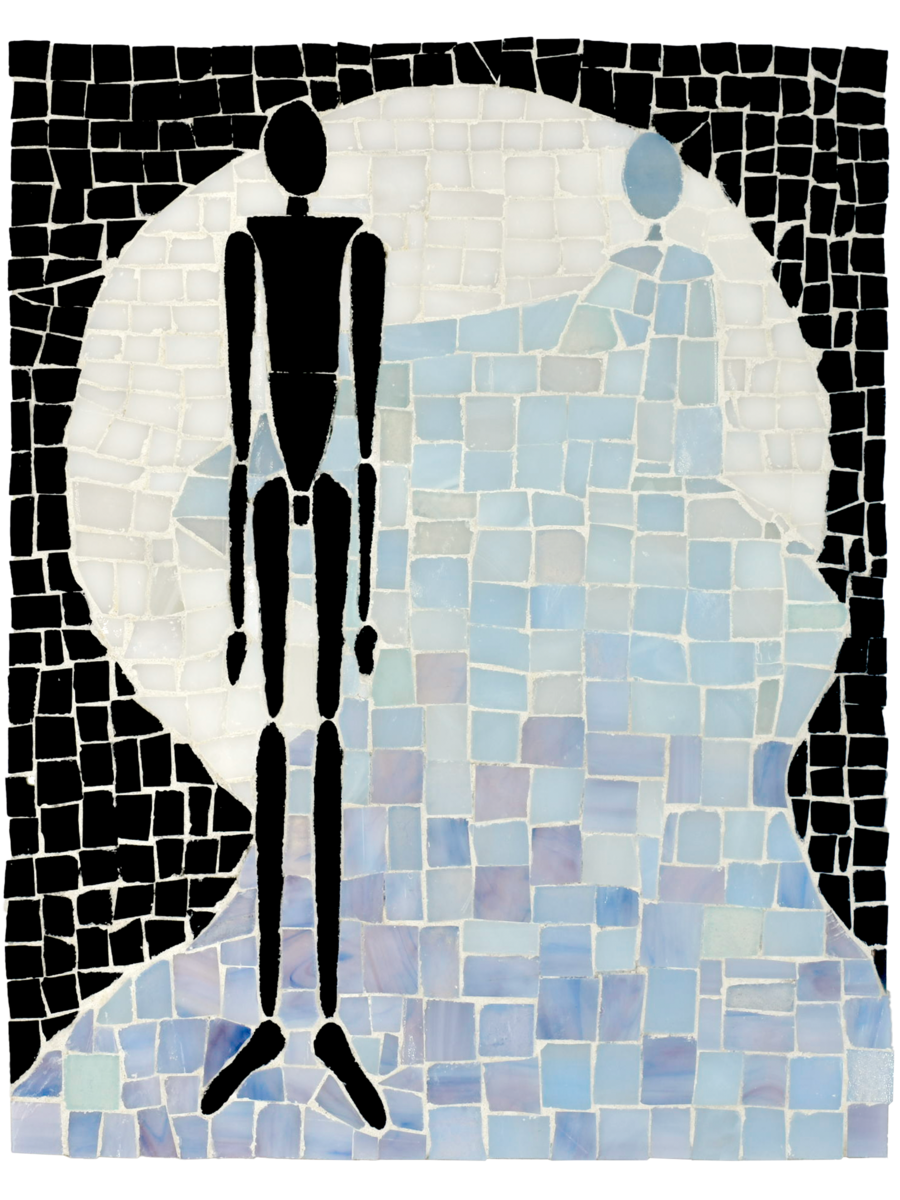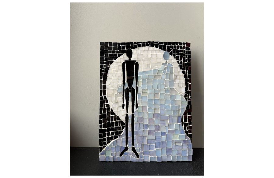 Идея выросла из дорожной зарисовки. Смальта, подобранная под «акриловую» палитру, придаёт памяти вес и живой блеск.