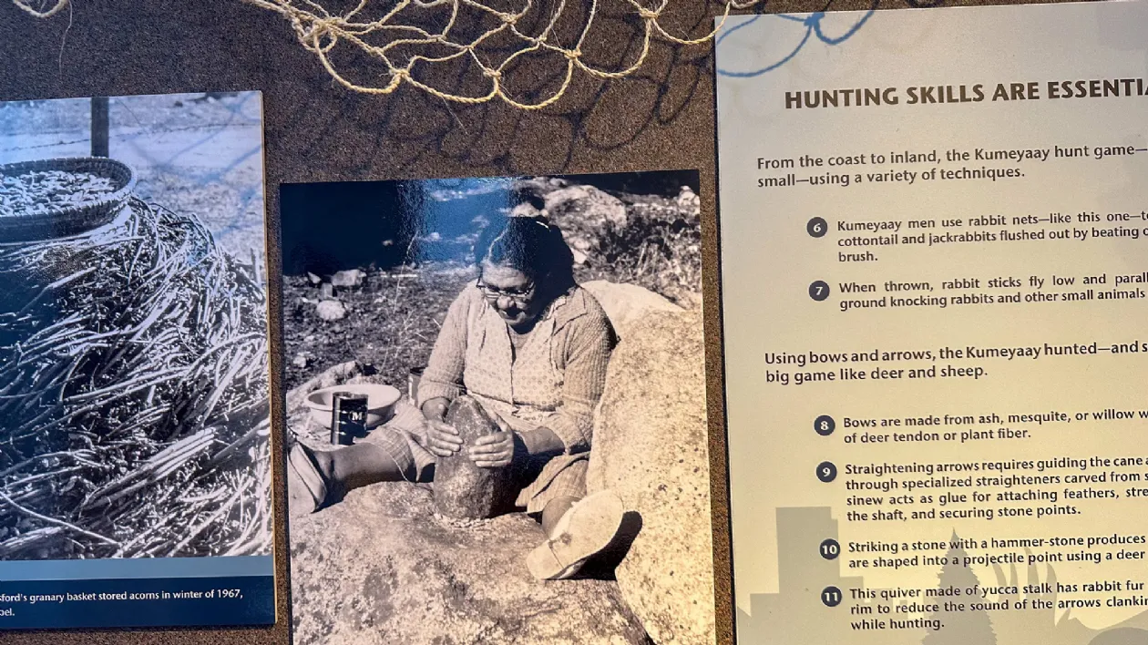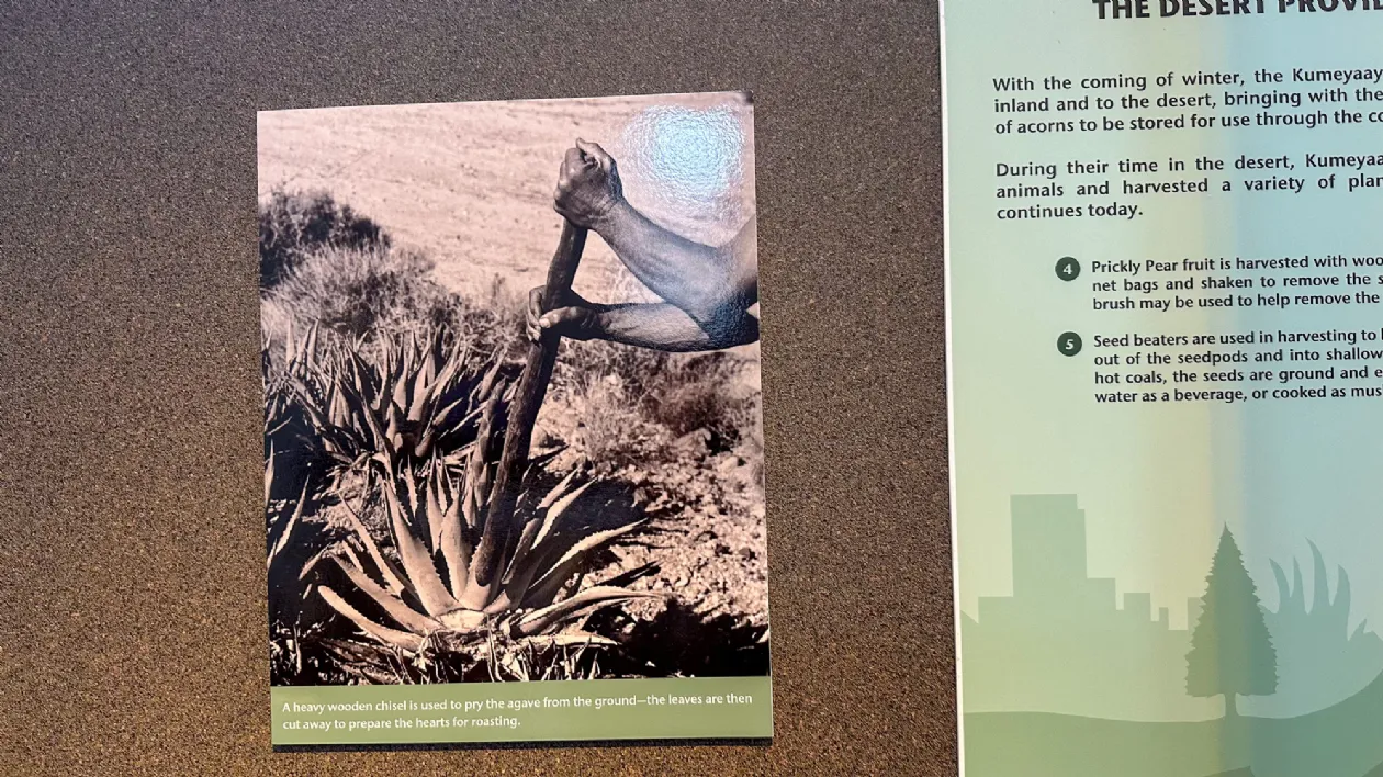 Справа: Охотничьи навыки племени Кумеяй (XVIII), Музей «Нас» Слева: Человек племени Кумеяй собирает урожай агавы (XVIII), Музей «Нас»