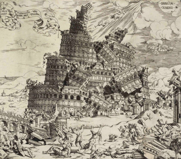 Библейский сюжет о Вавилонской башне (Бытие 11:1–9) — один из самых известных мифов, объясняющих возникновение многообразия языков. В этом повествовании высокомерное стремление людей возвести башню «до небес» оборачивается божественным вмешательством: Господь смешивает языки строителей, и те уже не могут понимать друг друга, из-за чего грандиозный проект останавливается. Со временем образ незавершённой башни превратился в культурный символ, воплощающий дерзость человеческой гордыни и наказание за неё. Недаром само выражение «вавилонское столпотворение» стало крылатым — так образно называют хаос, шум и полное непонимание между людьми.