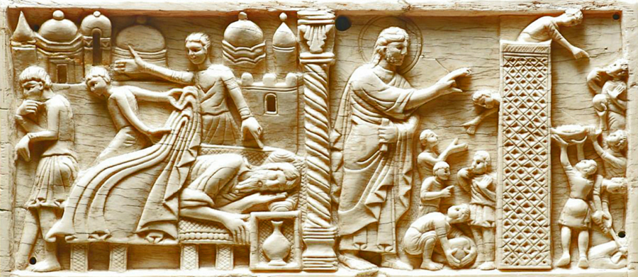 Вавилонская башня, Неизвестный автор, XII век. Палатинская капелла, Палермо; Вавилонская башня, Неизвестный автор, XI век. Резьба по слоновой кости.