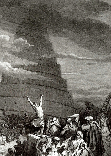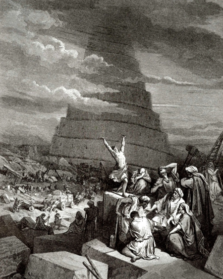 11:6 И сказал Господь: вот, один народ, и один у всех язык; и вот что начали они делать, и не отстанут они от того, что задумали делать; 11:7 сойдём же и смешаем там язык их, так чтобы один не понимал речи другого. 11:8 И рассеял их Господь оттуда по всей земле; и они перестали строить город [и башню]. 11:9 Посему дано ему имя: Вавилон, ибо там смешал Господь язык всей земли, и оттуда рассеял их Господь по всей земле.» — Бытие, глава 11