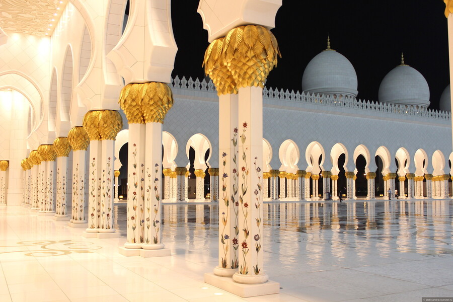 Колоннада мечети шейха Зайда ночью. URL: https://commons.wikimedia.org/wiki/File:Sheikh_Zayed_Mosque_night_columns.jpg Источник: Wikimedia Commons. Автор: Mstyslav Chernov
