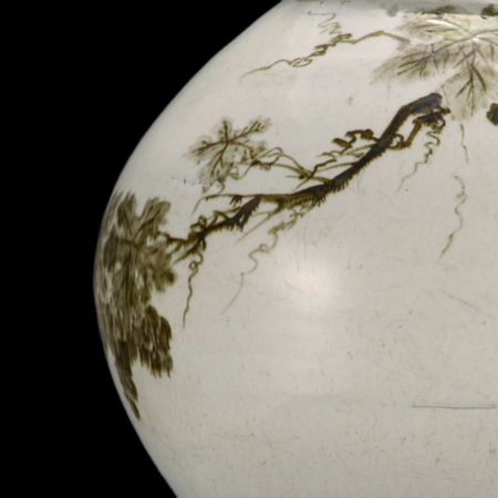 Банка с виноградной лозой. Фарфор с подглазурным рисунком в медно-красных тонах.