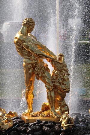 Если у Людовика XIV не хватало воды, то у Петра I ее было в избытке — дворцово-парковый комплекс расположили на берегу Финского залива, который самотеком питал пруды-накопители, откуда по подземным трубам вода поступала в 191 фонтан [18].