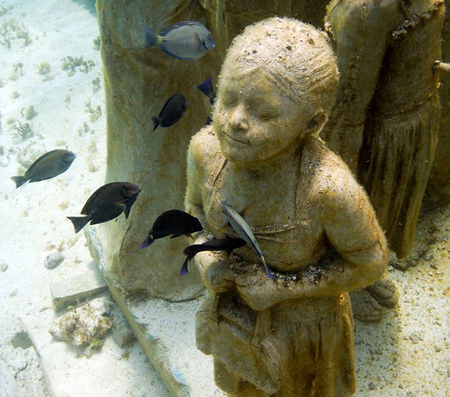 Джейсон де Кайрес Тейлор, подводная скульптурная инсталляция: Безмолвная эволюция, 2010 г., Национальный морской парк Канкуна, Мексика.