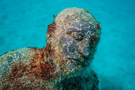 Подводная скульптурная инсталляция Джейсона де Кайреса Тейлора «Безмолвная эволюция» на пути к выполнению своей функции — созданию искусственного кораллового рифа.