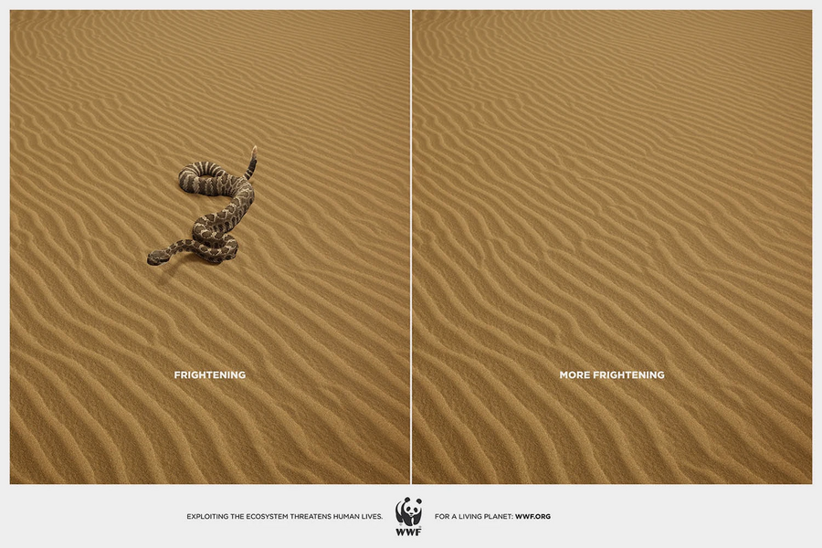 «Horrifying. More Horrifying.» («Ужасно. Еще ужаснее.»), агентство DDB& Co для Всемирного фонда дикой природы (WWF)