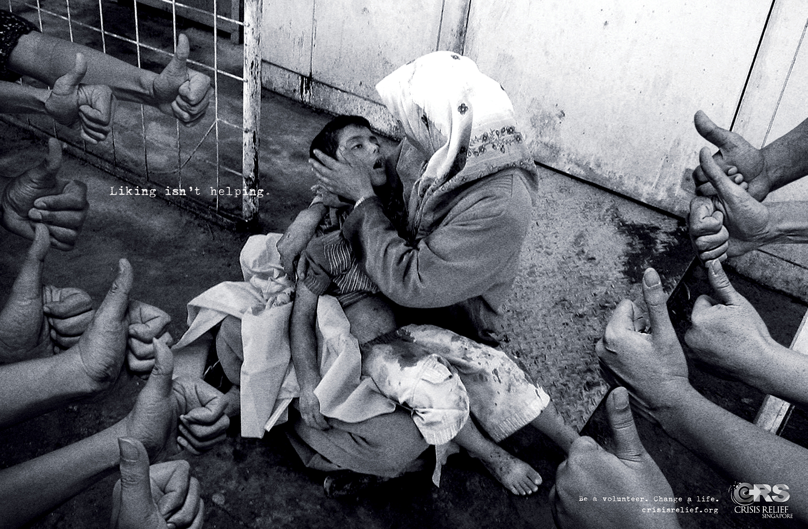 «Liking isn’t helping» («Лайки не помогают»), Publicis Singapore для Crisis Relief Singapore, 2013
