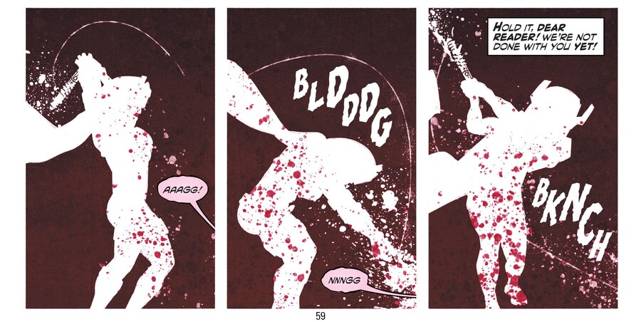Частый приём в комиксе — повторение почти идентичных фреймов. В сценах домашних диалогов это может усиливать ощущение рутины и эмоционального истощения, помогает показать моменты, противопоставленные эпическим сражениям, когда время идёт медленно и без событийно, но также может передать ожидание или, опять же, сконцентрировать внимание на эмоциональном весе момента.