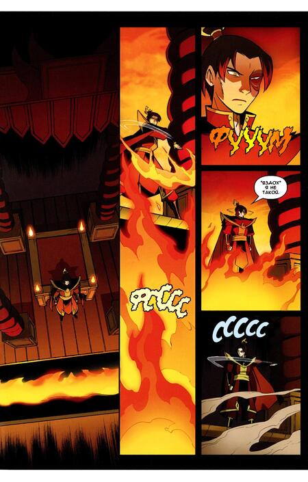 Для флэшбэков в графической серии чаще всего используют одну палитру, особенно, если это прошлое аватаров до Аанга. Это палитра из сепии, как в старых фотографиях, чаще всего в этой мрачной атмосфере изображаются битвы.