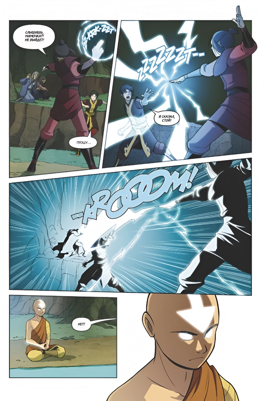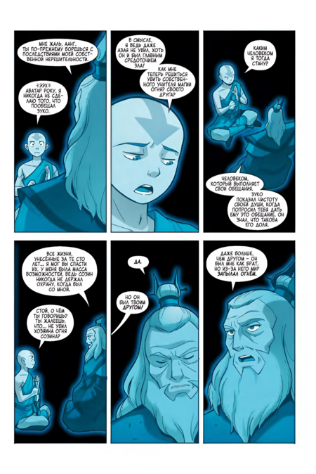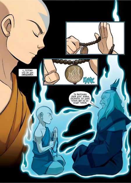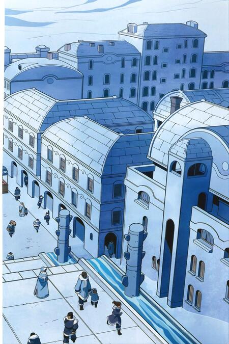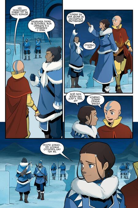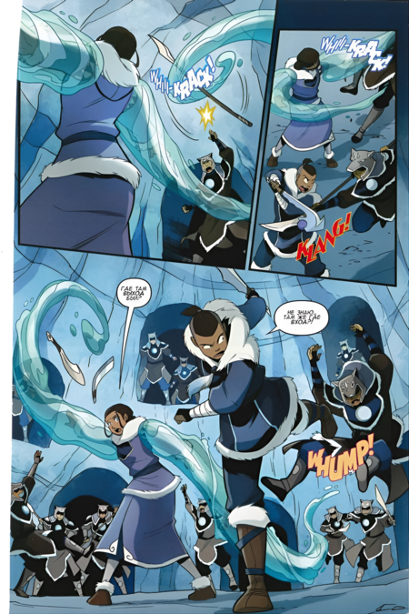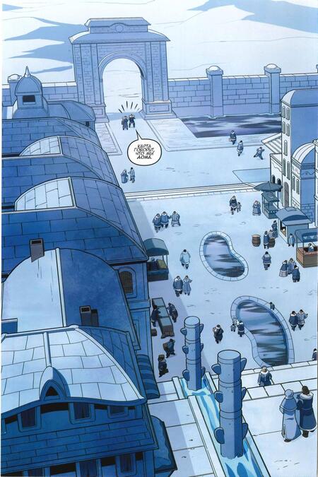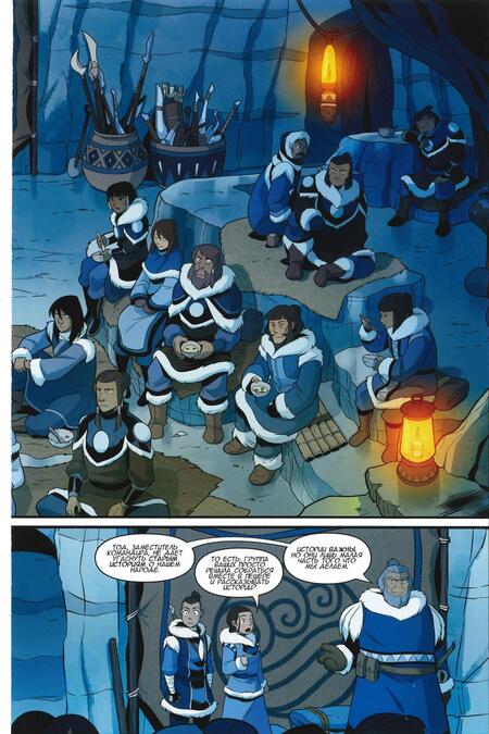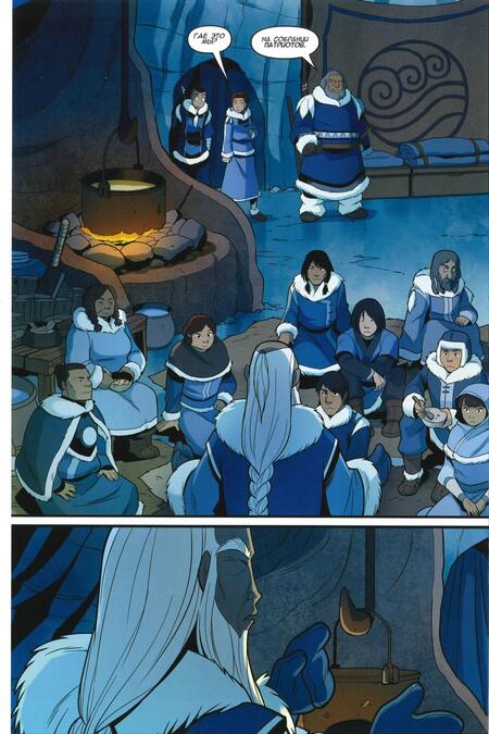 Заключительная часть комикса полностью посвящена Южному племени воды, поэтому весь том нарисован в сине-белых тонах.