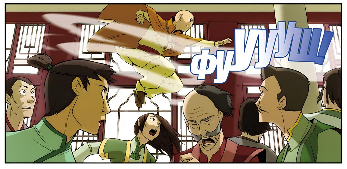 Много лет меня восхищало то, как авторы продумали каждую стихию и её племя. Казалось бы, очень просто, но это работает! Поэтому я подумала, почему бы не проанализировать образы каждой стихии и мира духов в этих комиксах? Конечно же, стихии проявляются в цветовой палитре: как цвет используется для обозначения той или иной «силы» и энергии, какое настроение она передает, форме и линиях — жесткие четкие линии ли это, как у стихии земли, мягкий и полупрозрачный воздух, пластичная равномерная вода или разрушительное пламя, которое занимает всё место на фрейме. А также узнаваемы сами носители этих стихий, из какого они племени. Об этом говорит их одежда, разные элементы на ней, какой она формы и цвета. И, как и во всех графических романах, о многом говорит и композиция — как изображаются боевые сцены или наоборот стабильность в их мире, а ещё то, как заполняются фреймы стихиями.
