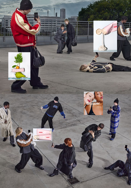 Визуальный код Glossier не обозначает продукт напрямую, а создаёт ауру смысла — ощущение заботы, принятия и телесной реальности
