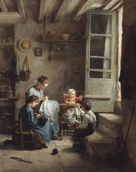 Пьер Эдуард Фрер, «Руки помощи», 1880 г.// Пьер Эдуард Фрер, «Вечерняя молитва», 1857 г.