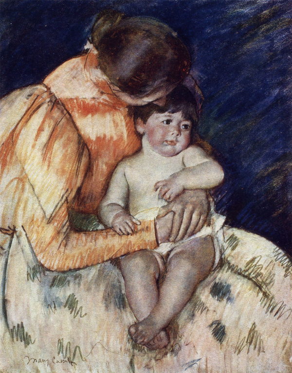 Берта Моризо, «У колыбели», 1872 г.// Мэри Кассат, «Молодая мать за шитьём», 1990 г.