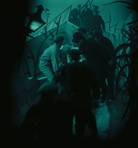 Кроме того, в «Носферату…» попадаются сцены схожие с «Кабинетом…». Герр Нок убегает от толпы народа, забираясь всё дальше на крыши зданий, словно Чезаре взбирающийся по острым углам домов с Джейн на руках.