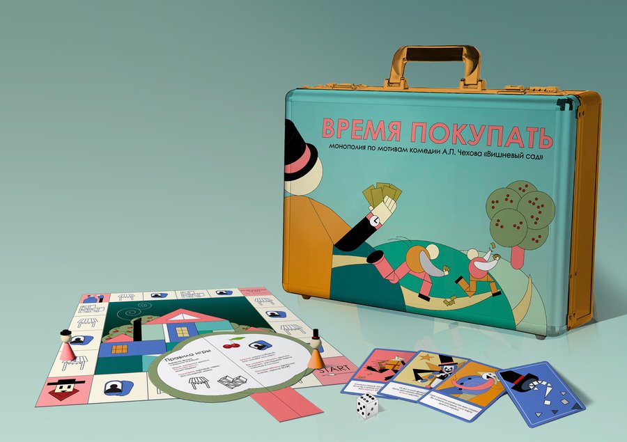 Настольная игра по мотивам комедии А. П. Чехова «Вишневый сад» и Монополии. Новая эпоха наступила, последний поезд в Париж уехал, а имение Любови Раневской разорилось. Ваша цель — накопить как можно больше денег, чтобы сделать решающую ставку на аукционе. Овладейте поместьем раньше, чем прозвучит стук топора по стволам вишнёвого сада…