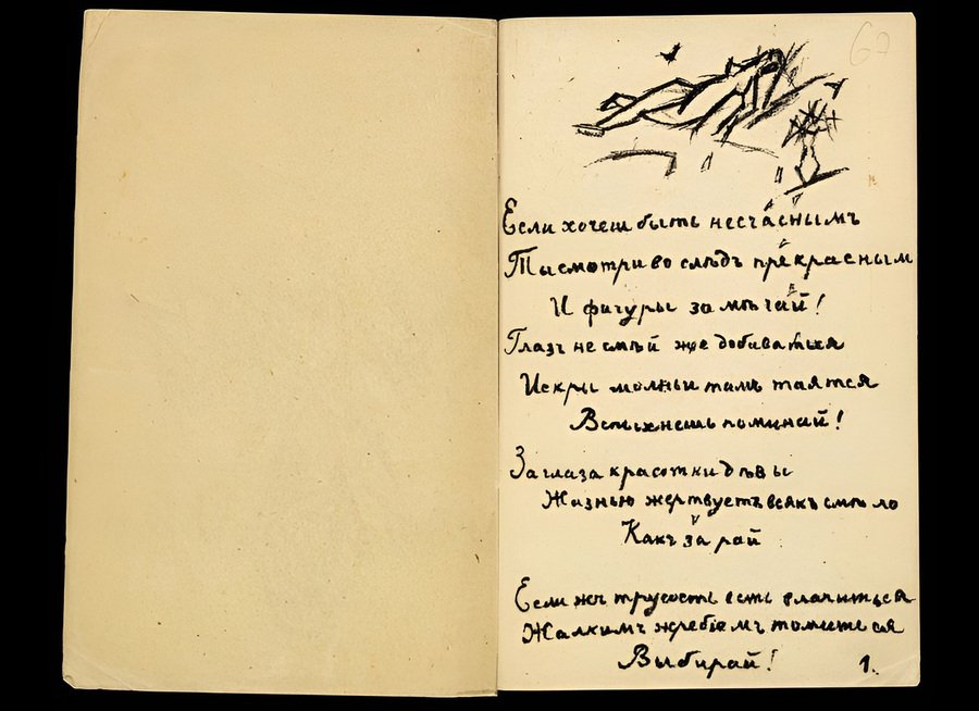 В книгах футуристов было объединено большое количество всего, как минимум на уровне тандема литератора и художника. Эти работы можно считать своего рода апофеозом авангарда: здесь и вызов, и бунтарство, и эксперименты, уникальность, самобытность, чувственный, мыслительный и тактильный опыт — громкий ансамбль материала, текста и иллюстрации, подпитанный философией течения.
