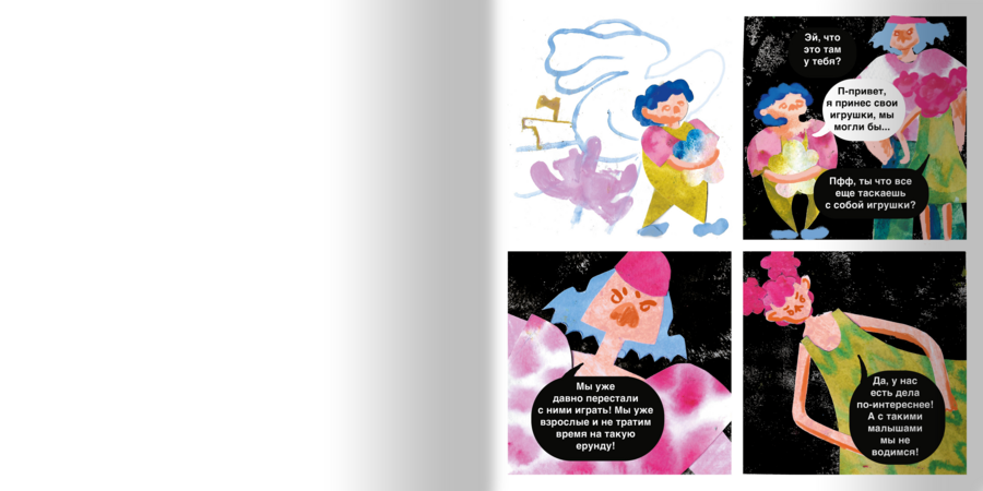 «Я больше не буду считать овец» — это детский комикс, рассказыающий о важности умения отстаивать личные границы и понимания себя. Главный герой выбросил свои игрушки, чтобы выглядеть взрослым в глазах крутых ребят. После этого он начинает страдать бессонницей. Герой решает посчитать овец, чтобы заснуть, и вдруг в его комнате появляются три страшные овцы. Вместе они ищут разные способы уснуть, которые с каждым разом становятся все менее приемлемы.
